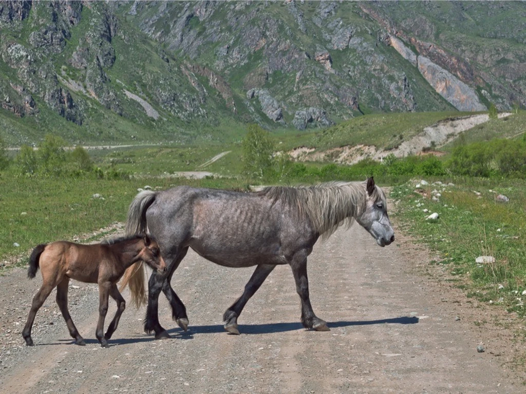 horses-walking-road